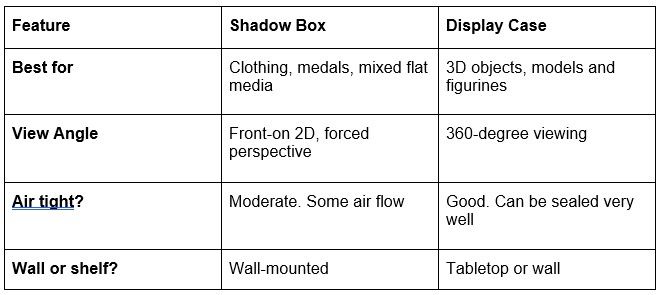 Shadow Box vs Display Cases: Which Is Best for Memorabilia Framing?